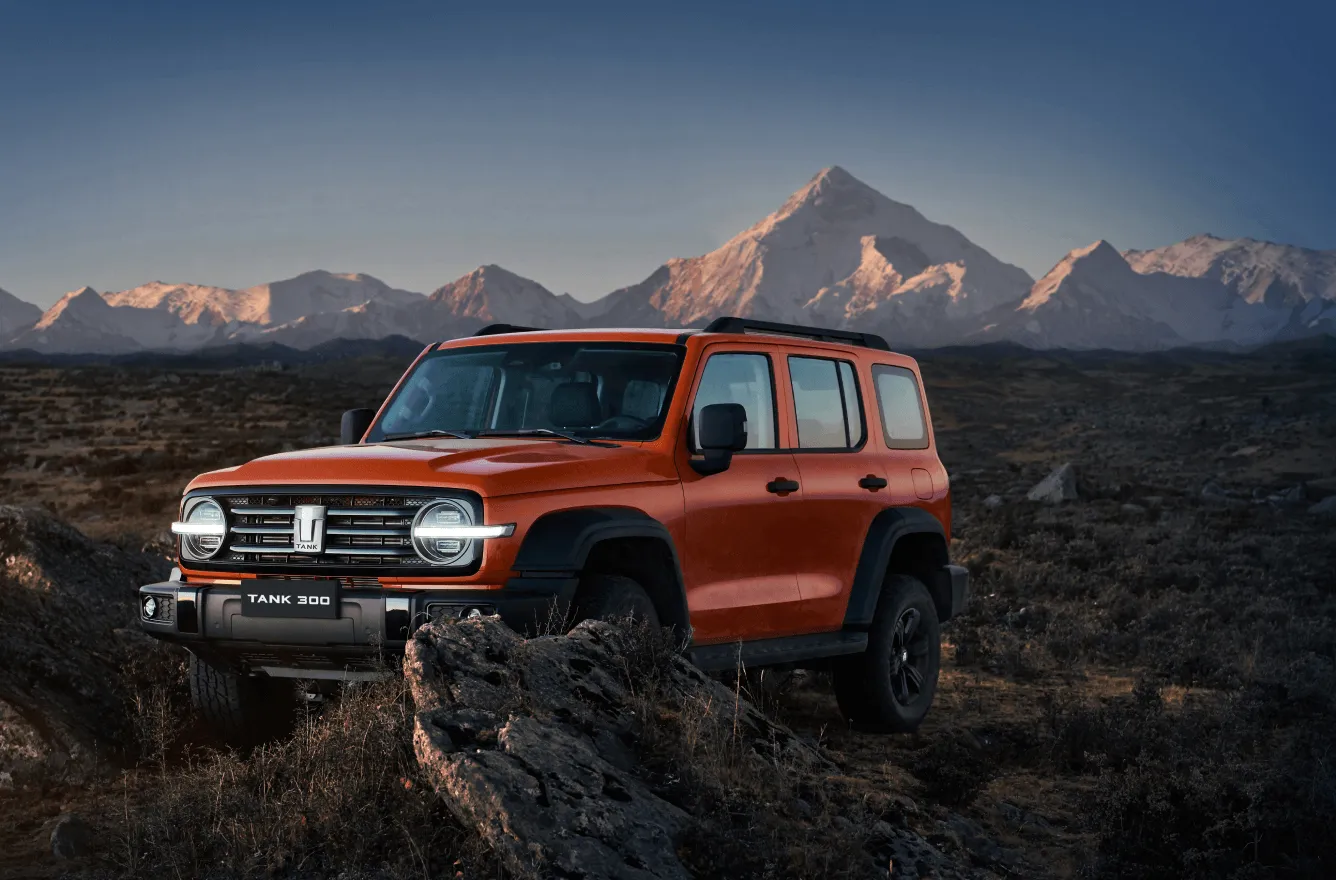 Прямые линии, угловатые формы, черные литые диски — все это сочетается в дизайне TANK 300.